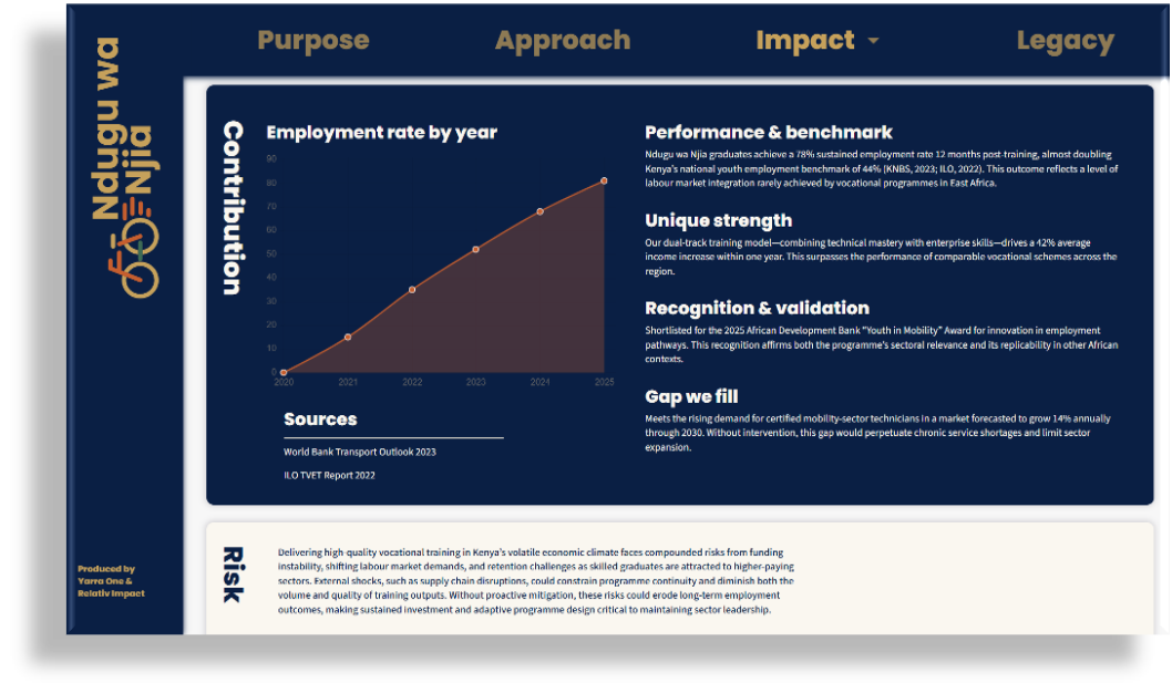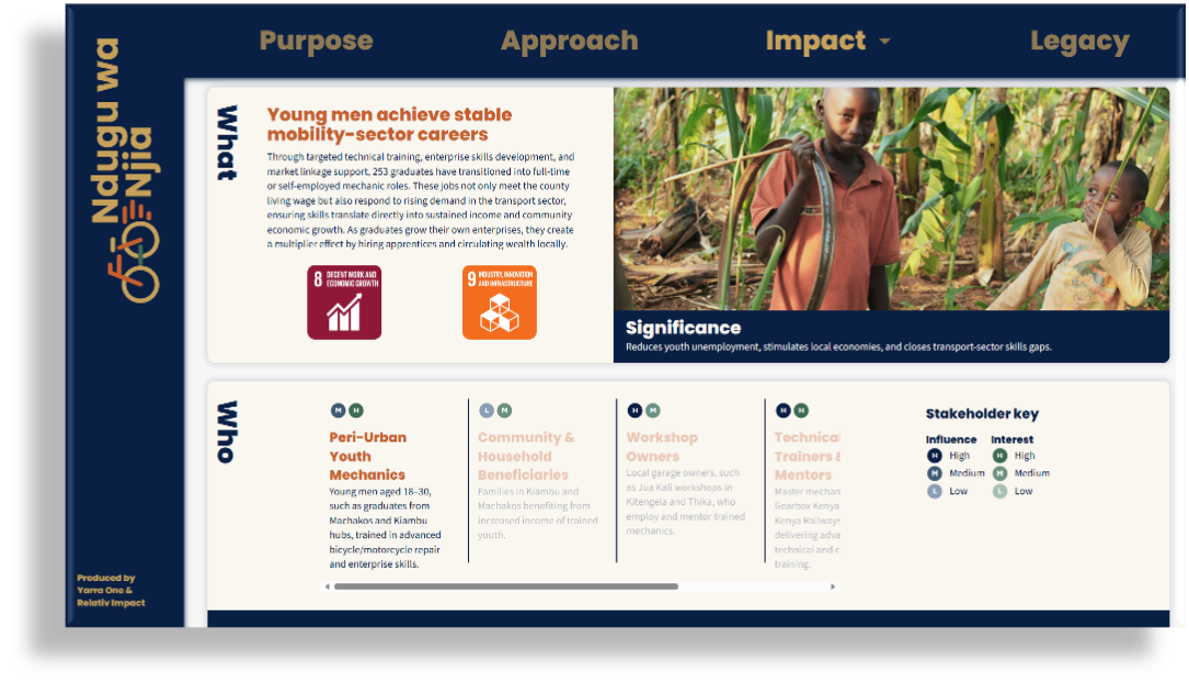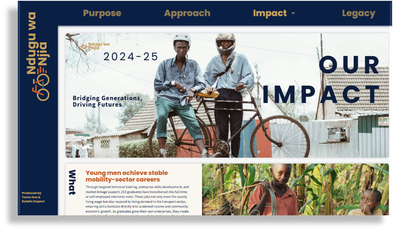 This impact report brings together your evaluation evidence, outcomes, and learning into a single, structured digital asset.
