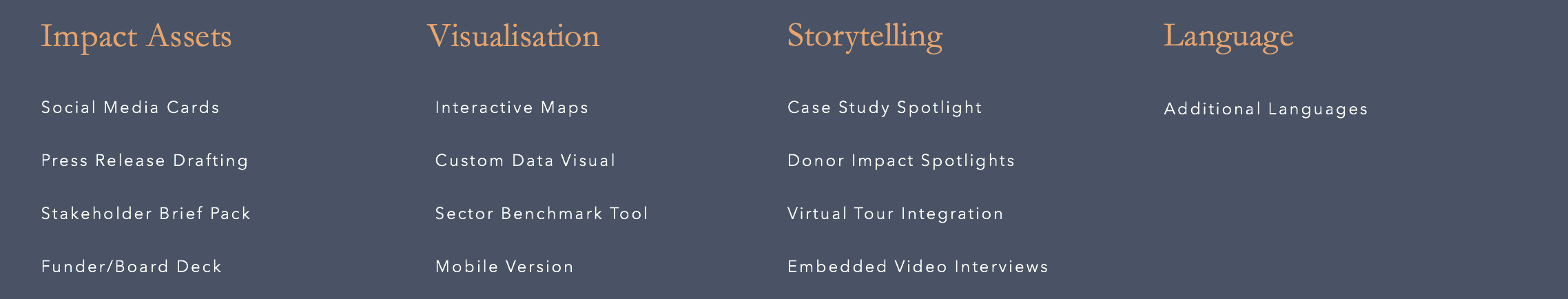 > Customised impact assets